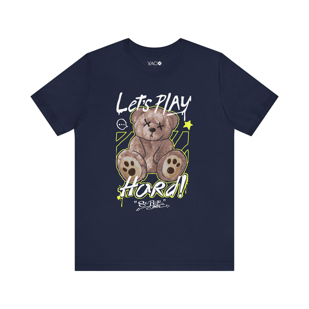 Unleash your bold side with thisĀ streetwear-inspired teddy bear design. Featuring a playful yet edgy look, the graphic blends soft teddy bear vibes with graffiti-style details and the powerful sloganĀ ā€œLet’s Play Hard – Super Cool.ā€