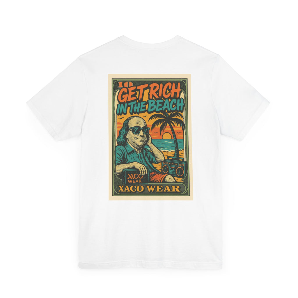 Retro Beach Themed Unisex Tee - Get Rich in the Beach Design