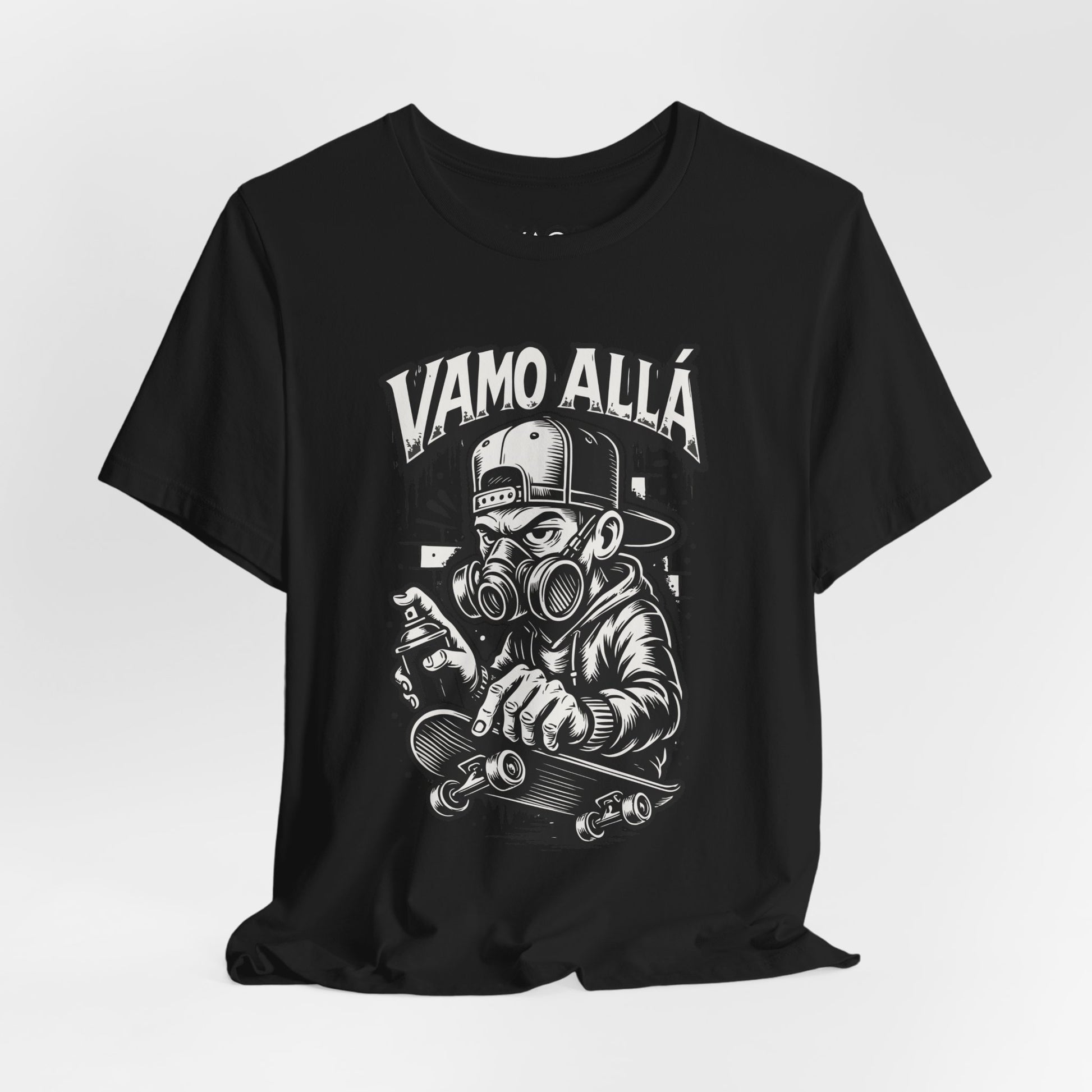 The Vamo Allá – Black Edition Tee delivers raw street energy with a clean, high-contrast design. Inspired by graffiti culture and skate life, this piece represents movement, rebellion, and the mindset of always pushing forward.